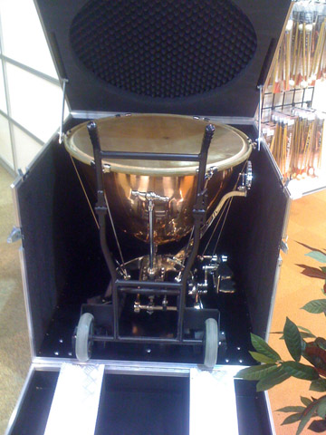 Auch beeindruckend fand' ich die Cases für Pauken. Ich habe bis dato nur eine bemerkenswertere Flight-Case-Lösung gesehen: Eine Waschmaschine! Ja sicher wie sollen denn die guten Stücke sonst auf Tour mitkommen.